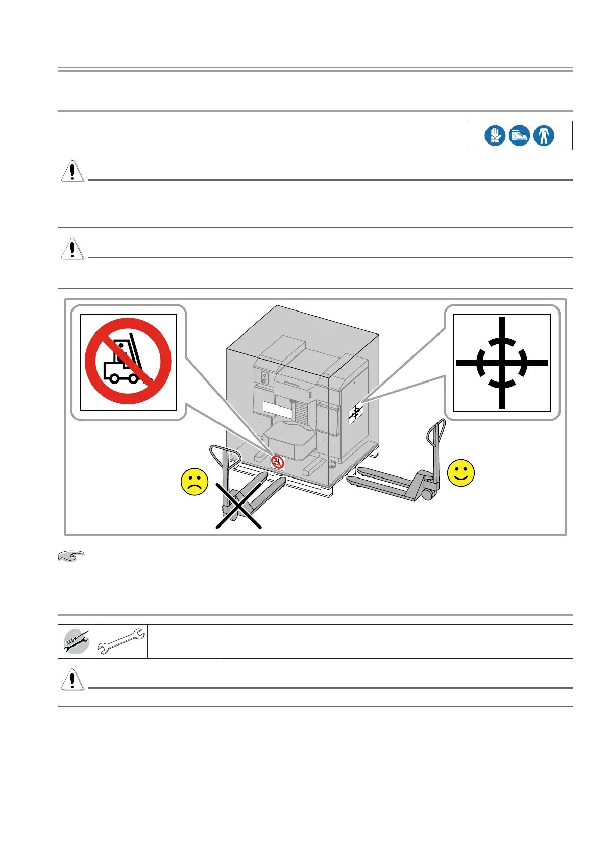 The packing must be handled only by qualied personnel using appropriate handling equipment. Do not stack