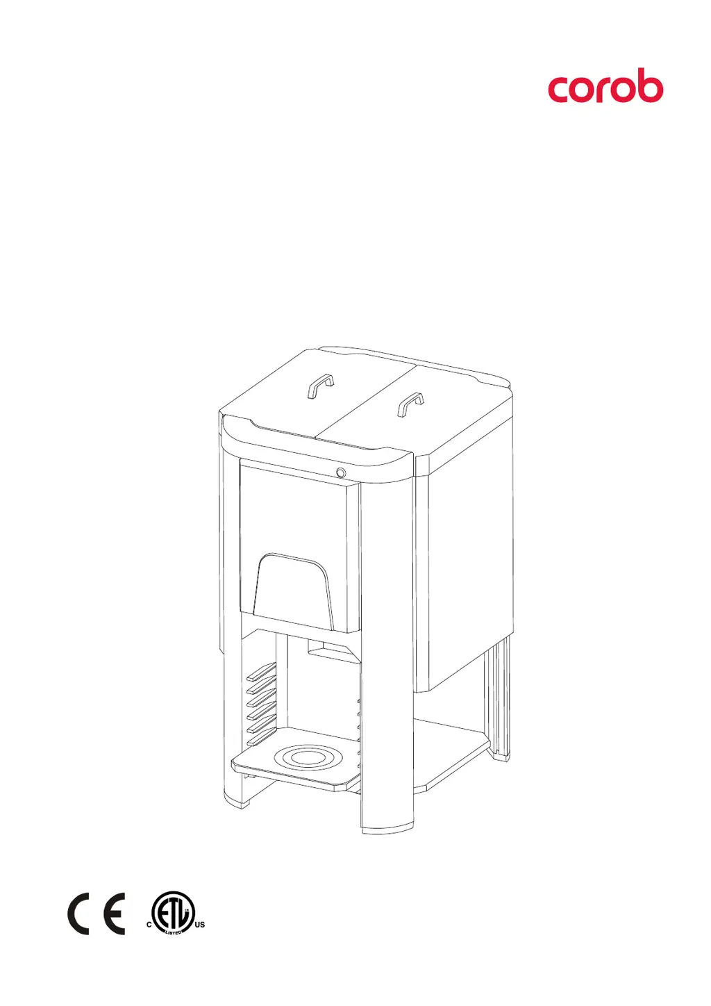 If your corob Dispenser doesn't turn on, check the power connections at the back of the machine. Ensure the main switch is in the ON (I) position. Replace any blown fuses inside the fuse compartment. If the power supply unit is in over current, wait a few minutes before restarting. If the issue persists, or if the electrical connections are defective, contact an authorized technical service.