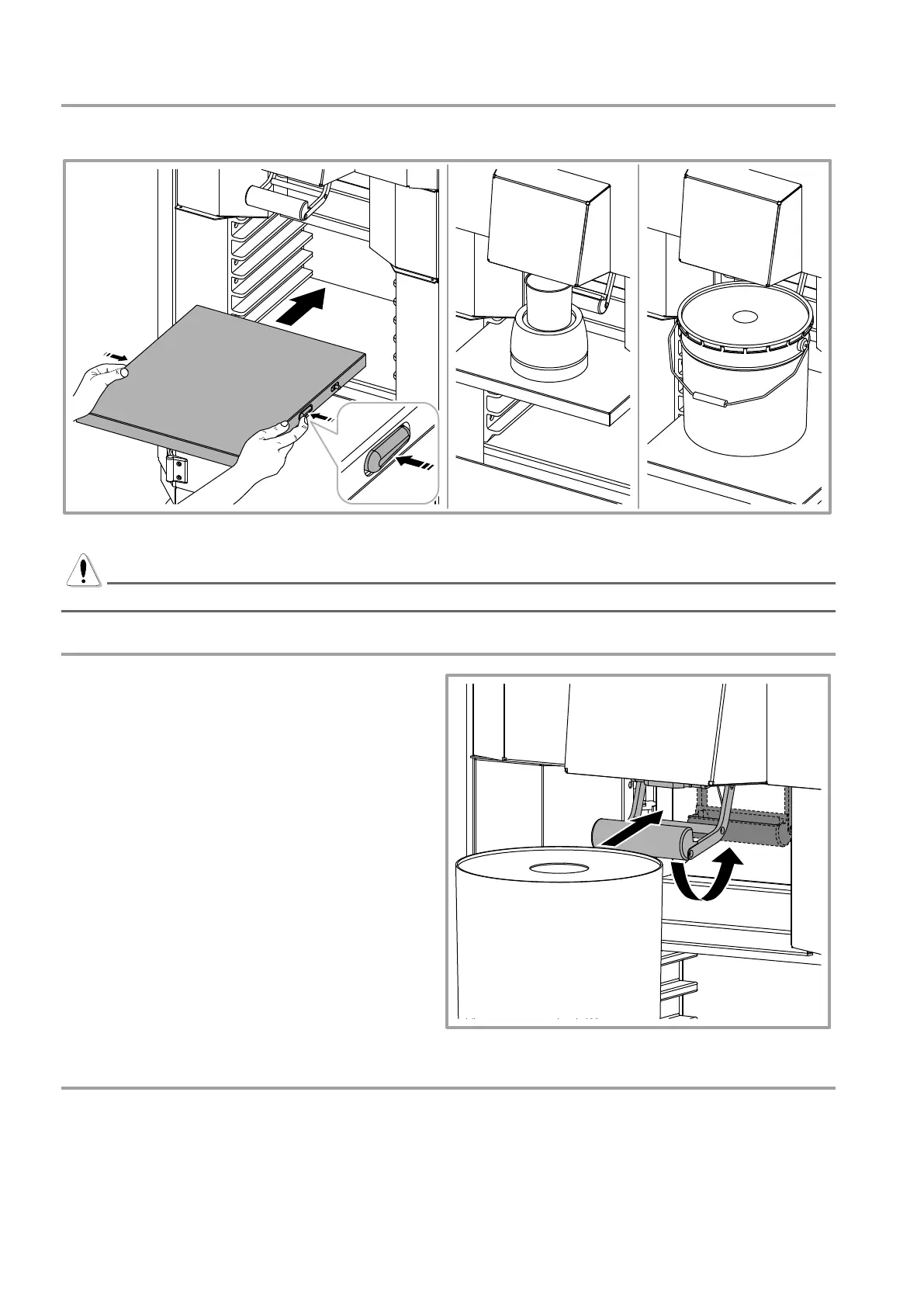 Keeping the two side buttons pressed, insert the shelf in the appripriate guide based on the size of the can to