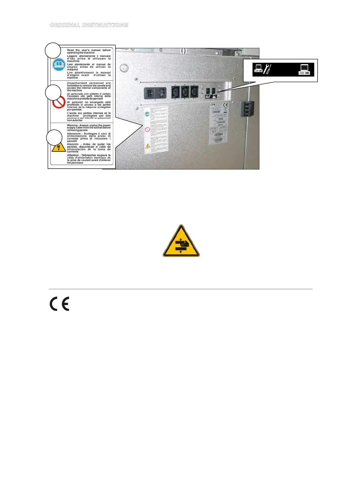 The machine has an identification plate on the rear door, indicating (Figure 2-3):