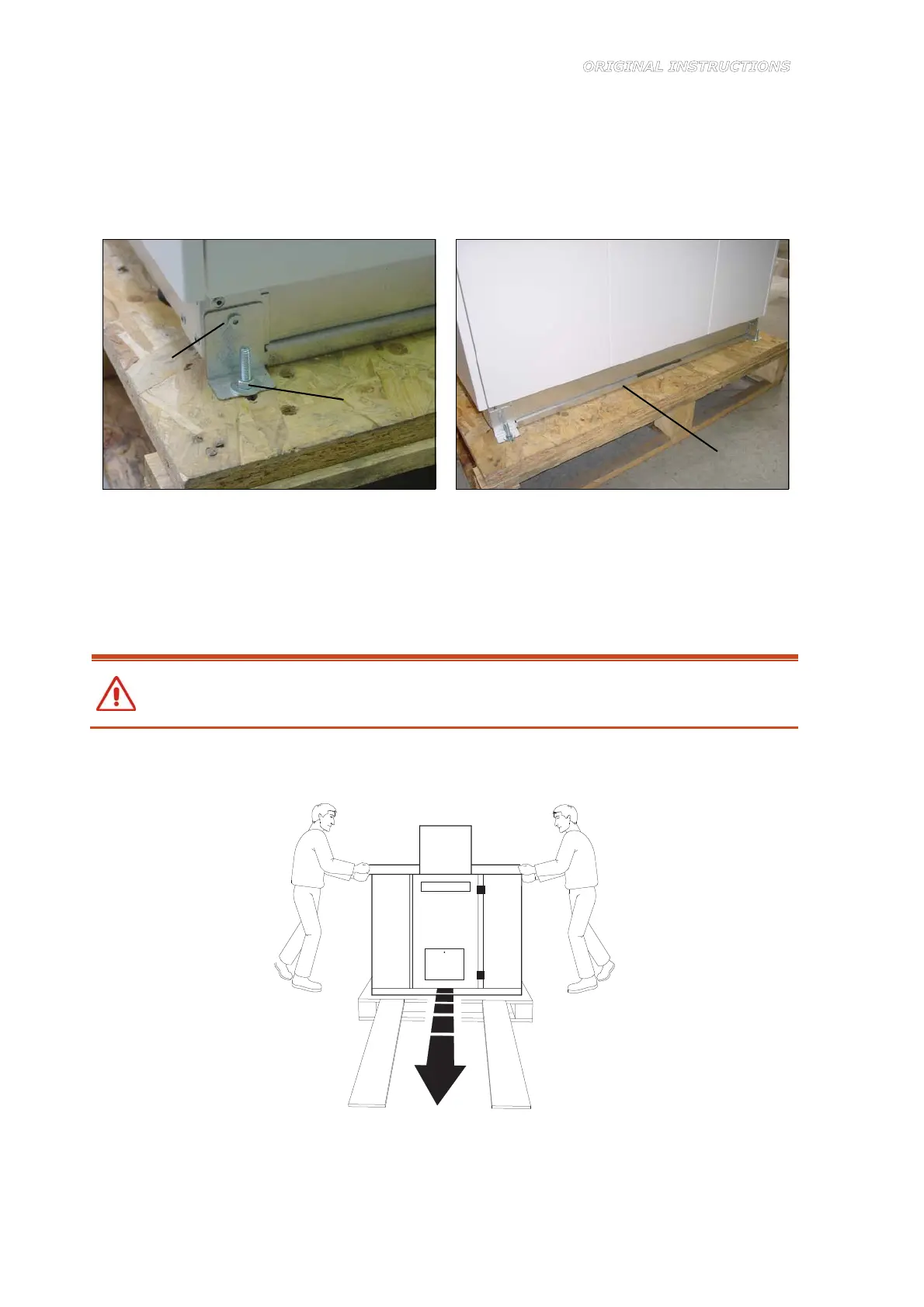 special sliding platforms provided; it must never be lifted by hand or dragged in any other