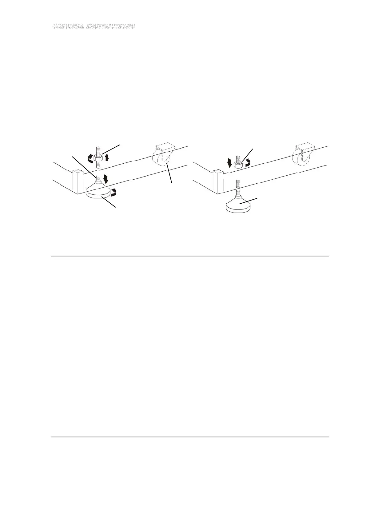 12. At this point, adjust the two front antivibration feet as described below, to support and level