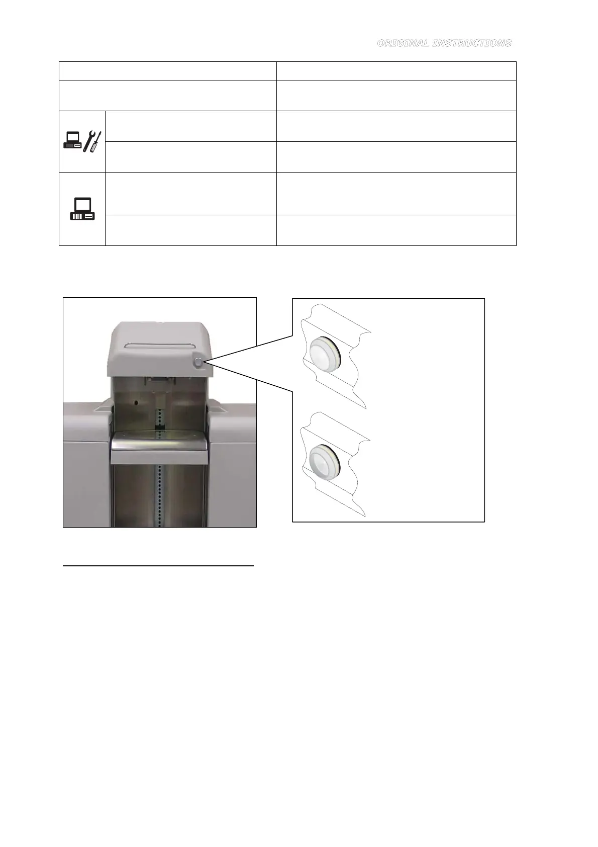 White lamp, with built-in button. When this lamp is lit, it indicates that the machine is powered