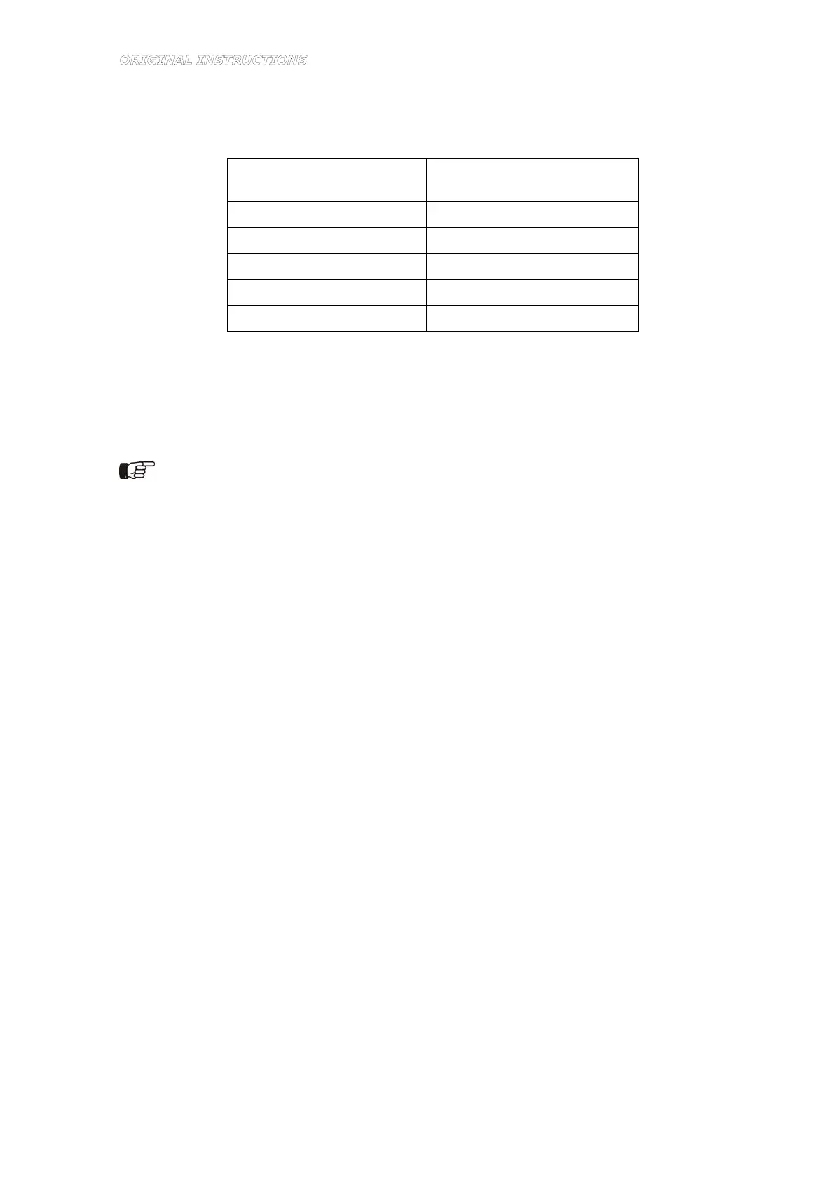 contains. When replacing the filtering net, refer to the following table in order to request the right