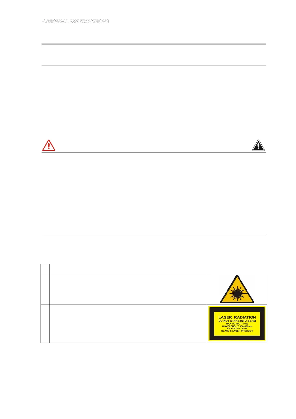The dispenser, if equipped with the Bung hole locator Laser (B.H.L.), is fitted with a Class 2 laser