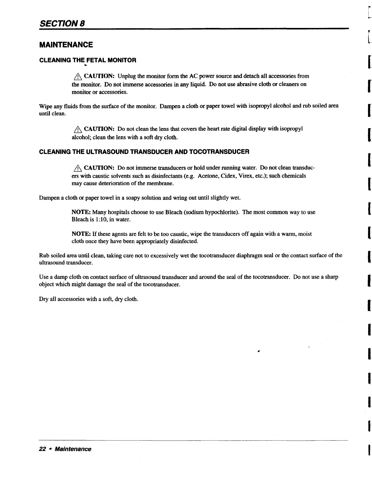 Corometrics 145 - Maintenance; Cleaning the Fetalmonitor; Cleaning the Ultrasound Transducer and Tocotransducer