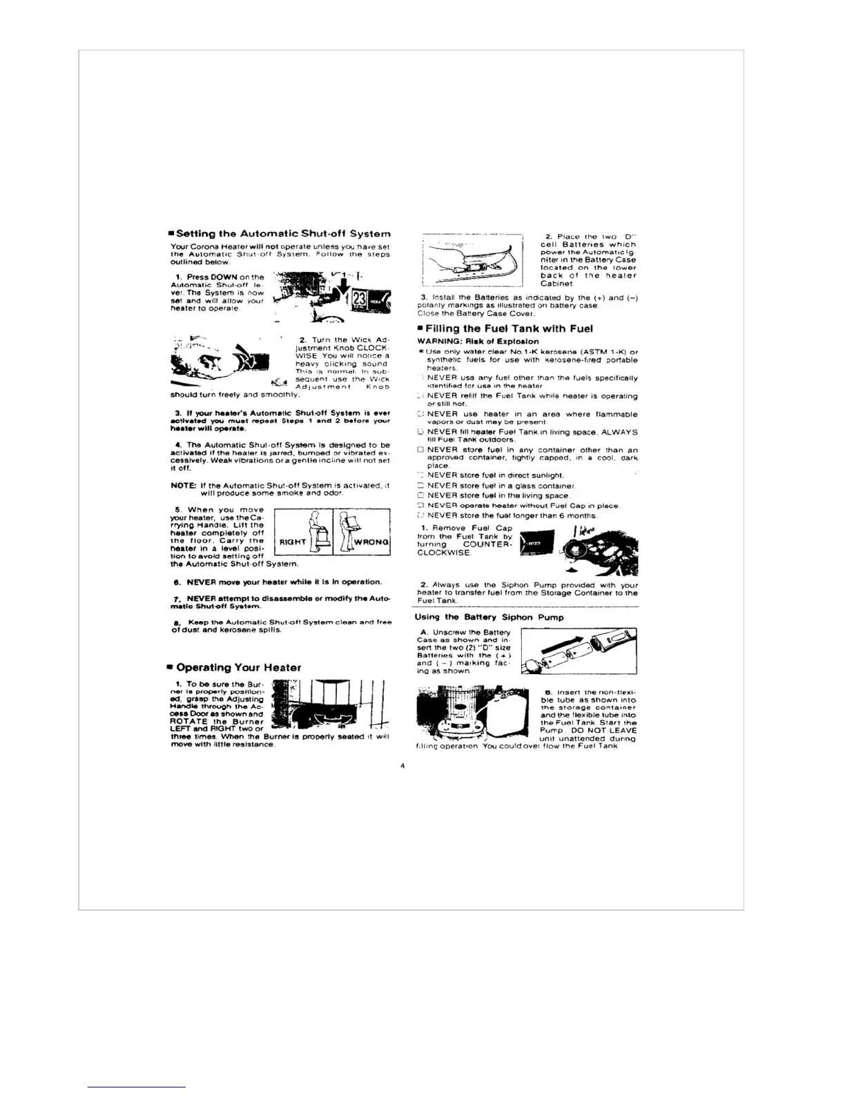 CORONA 23-DK - Automatic Shut-off System Setup; Filling the Fuel Tank with Fuel; Fuel Type and Safety Warnings; Using the Siphon Pump
