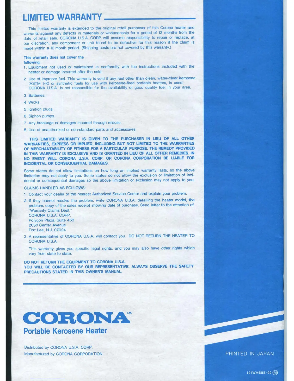 stributed by CORONA U.S.A. CORP.