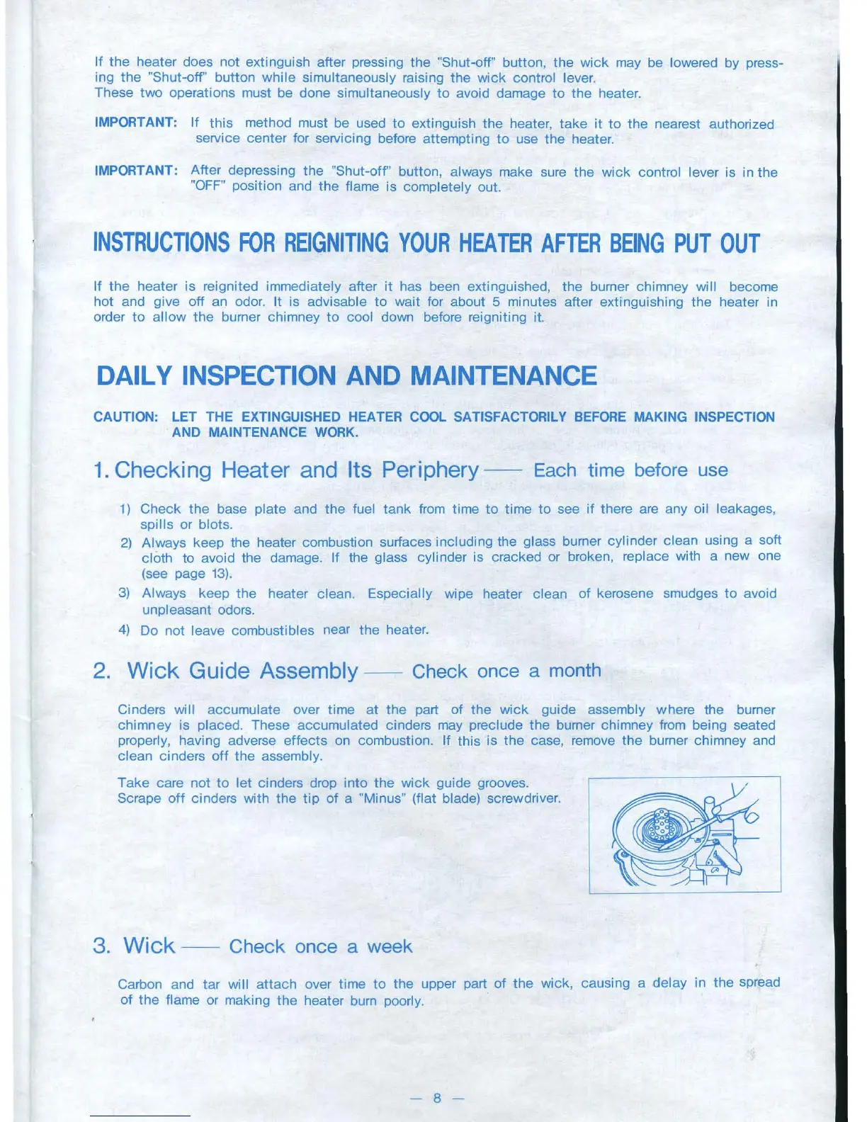 CAUTION: LET THE EXTINGUISHED HEATER