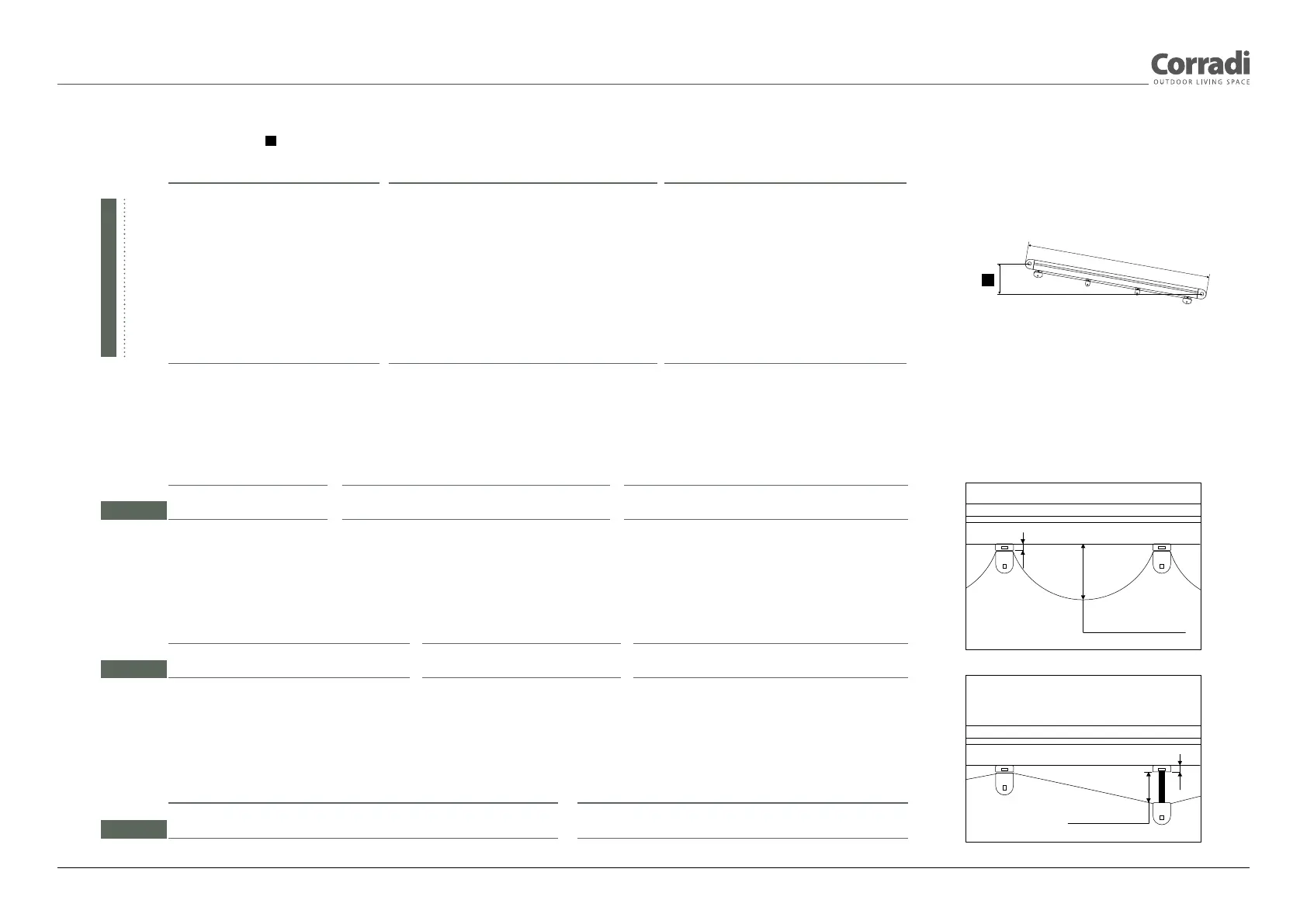 Valores mínimos de la pendiente Y en cm para Palladia® y Palladia® pared-pared versión inclinada con una única lona.