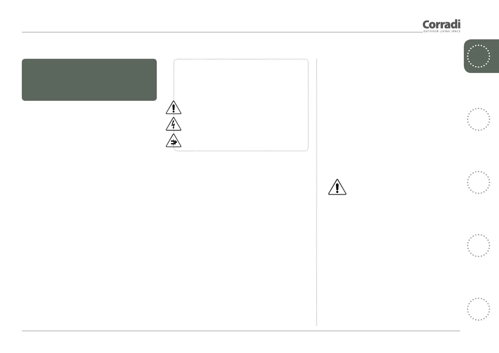 Ogni prodotto Corradi ha una sua specifica funzione descritta nel presente manuale; ogni utilizzo diverso e non previsto da quello indicato,