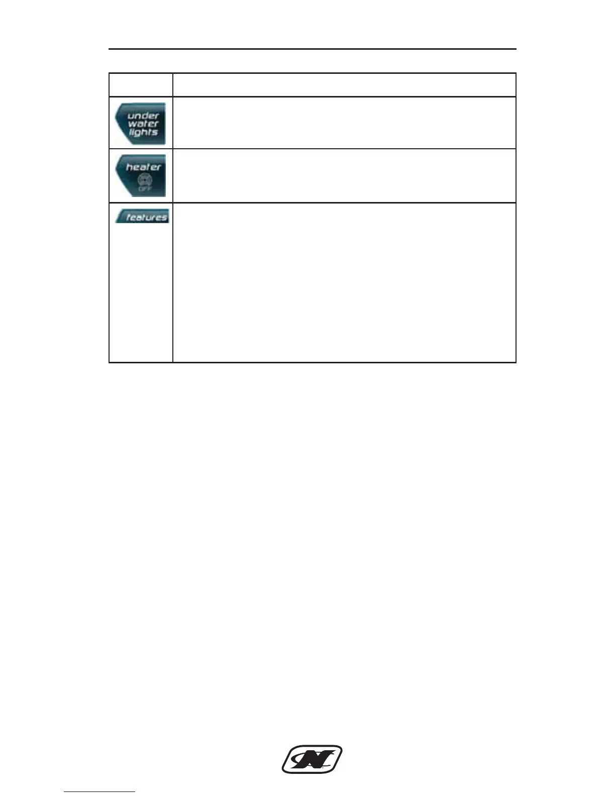 UNDERWATER LIGHTS – (if equipped) turns on or off the