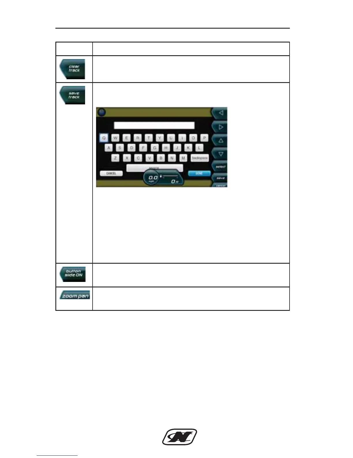 SAVE TRACK – displays a keyboard. Enter a track name. The