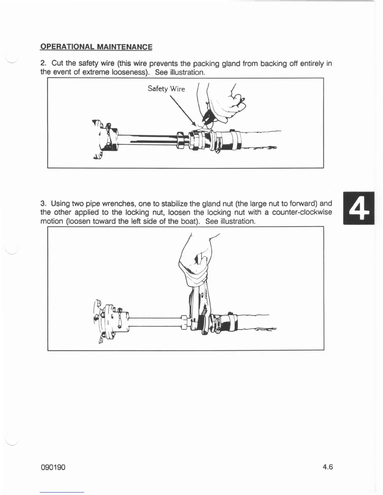 Cut the safety wire (this wire prevents the packing gland from backing off entirely