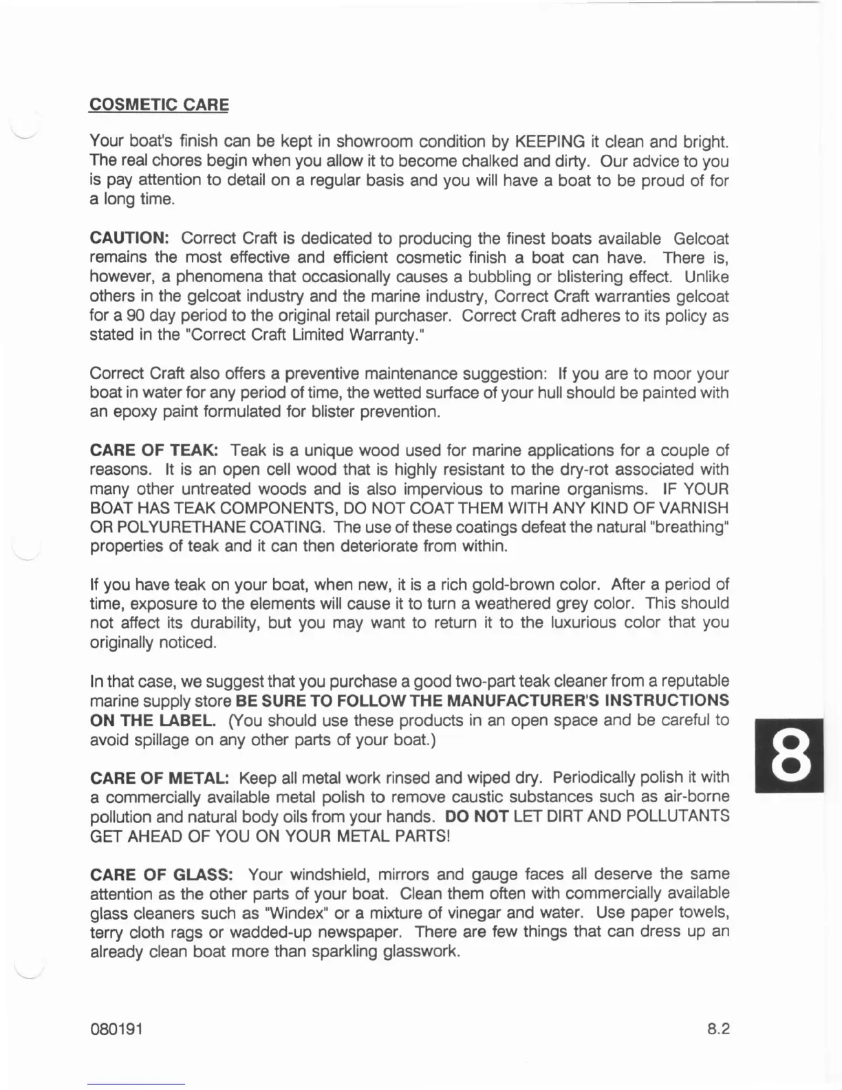 CAUTION: Correct Craft is dedicated to producing the finest boats available Gelcoat