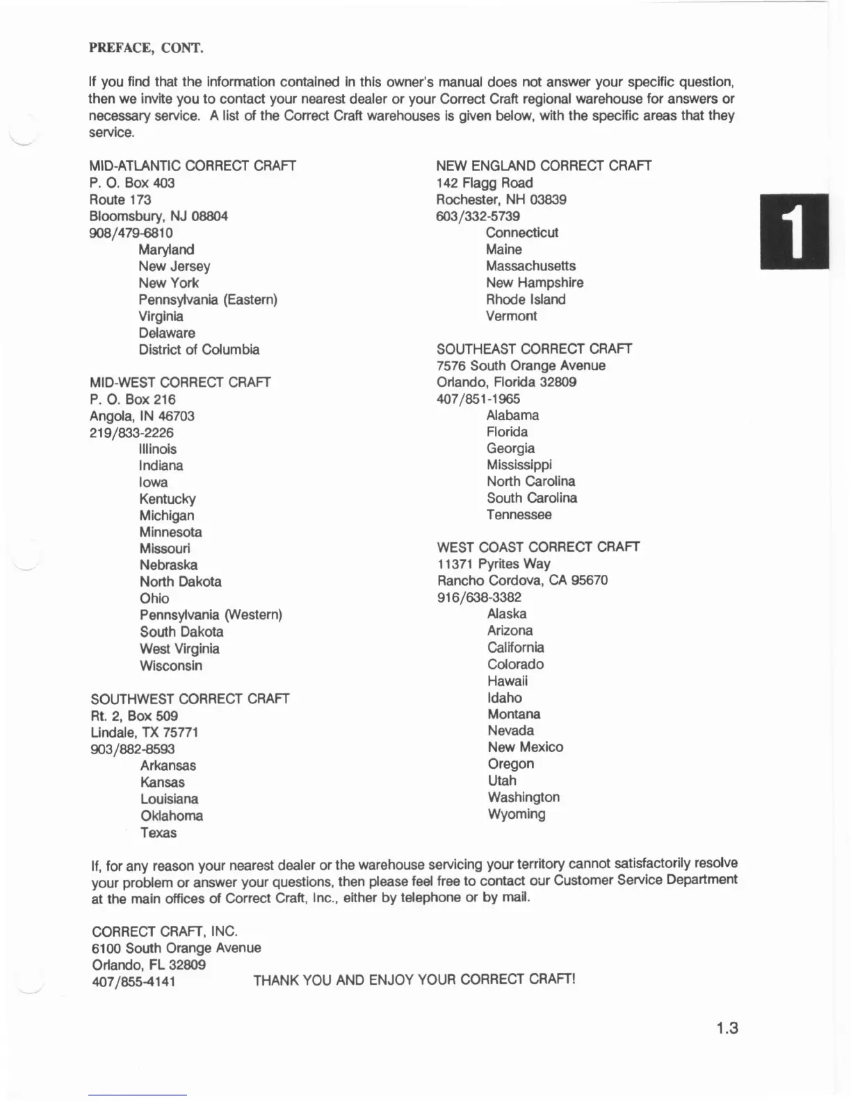 407/855-4141 THANK YOU AND ENJOY YOUR CORRECT CRAFT!