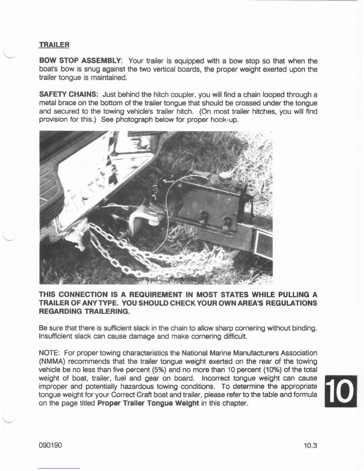 (NMMA) recommends that the trailer tongue weight exerted on the rear