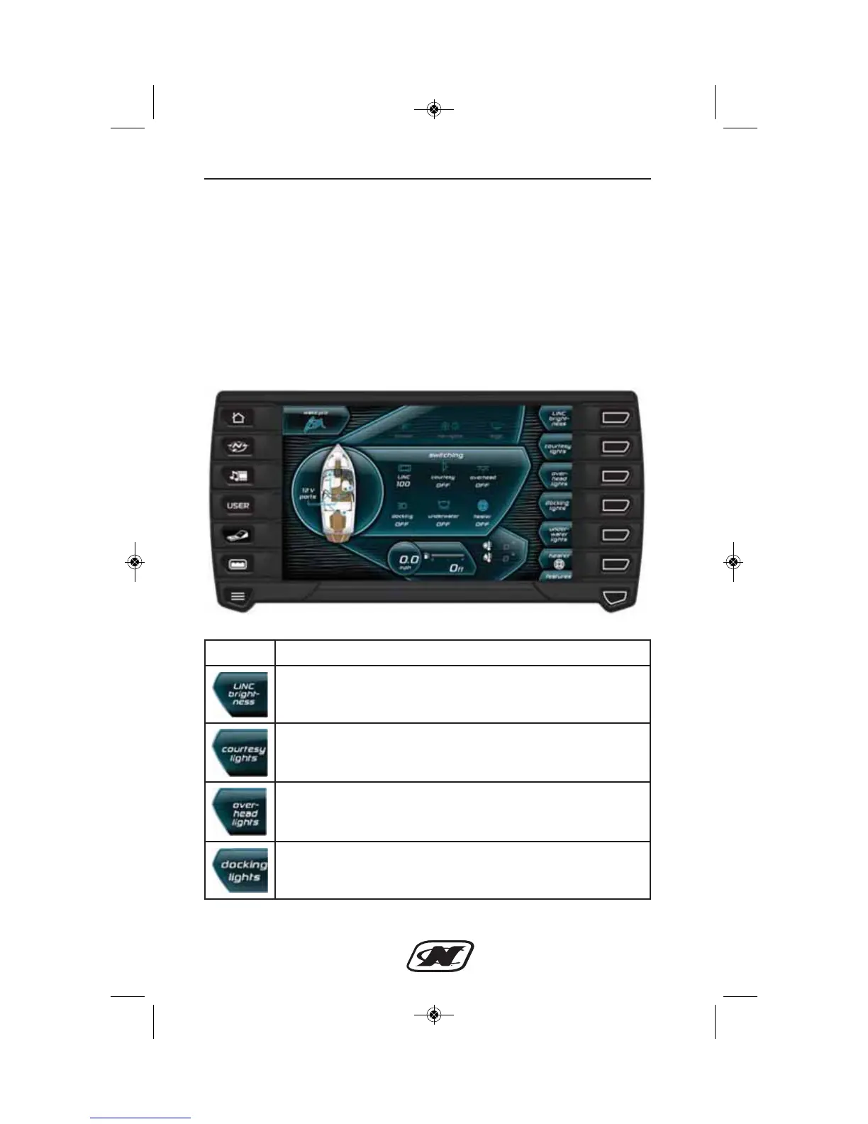 DOCKING LIGHTS – turns on or off the docking lights.
