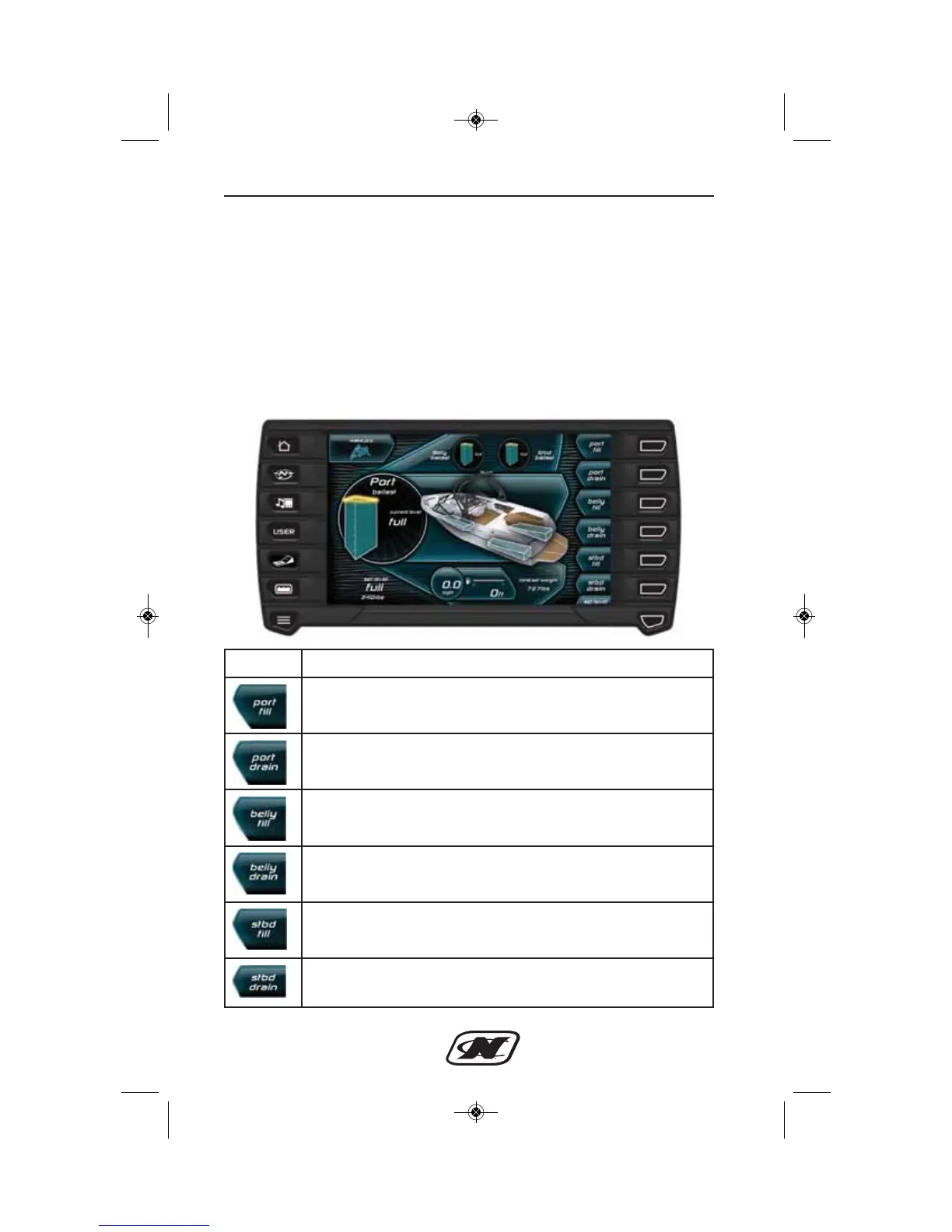 PORT DRAIN – turns on the pump to drain the port ballast