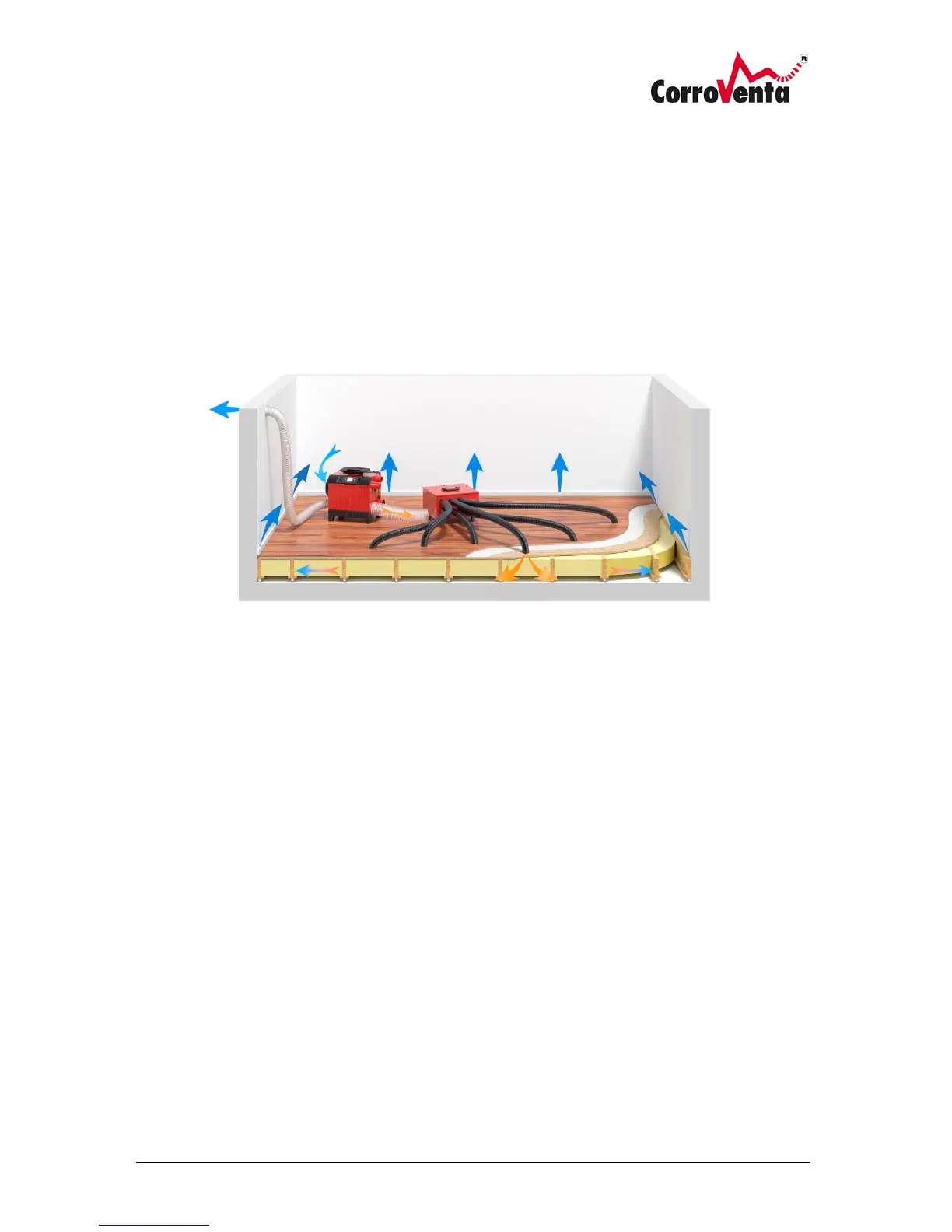 Drying of floor structure. Note that the dry air hose of the dryer on the right is not