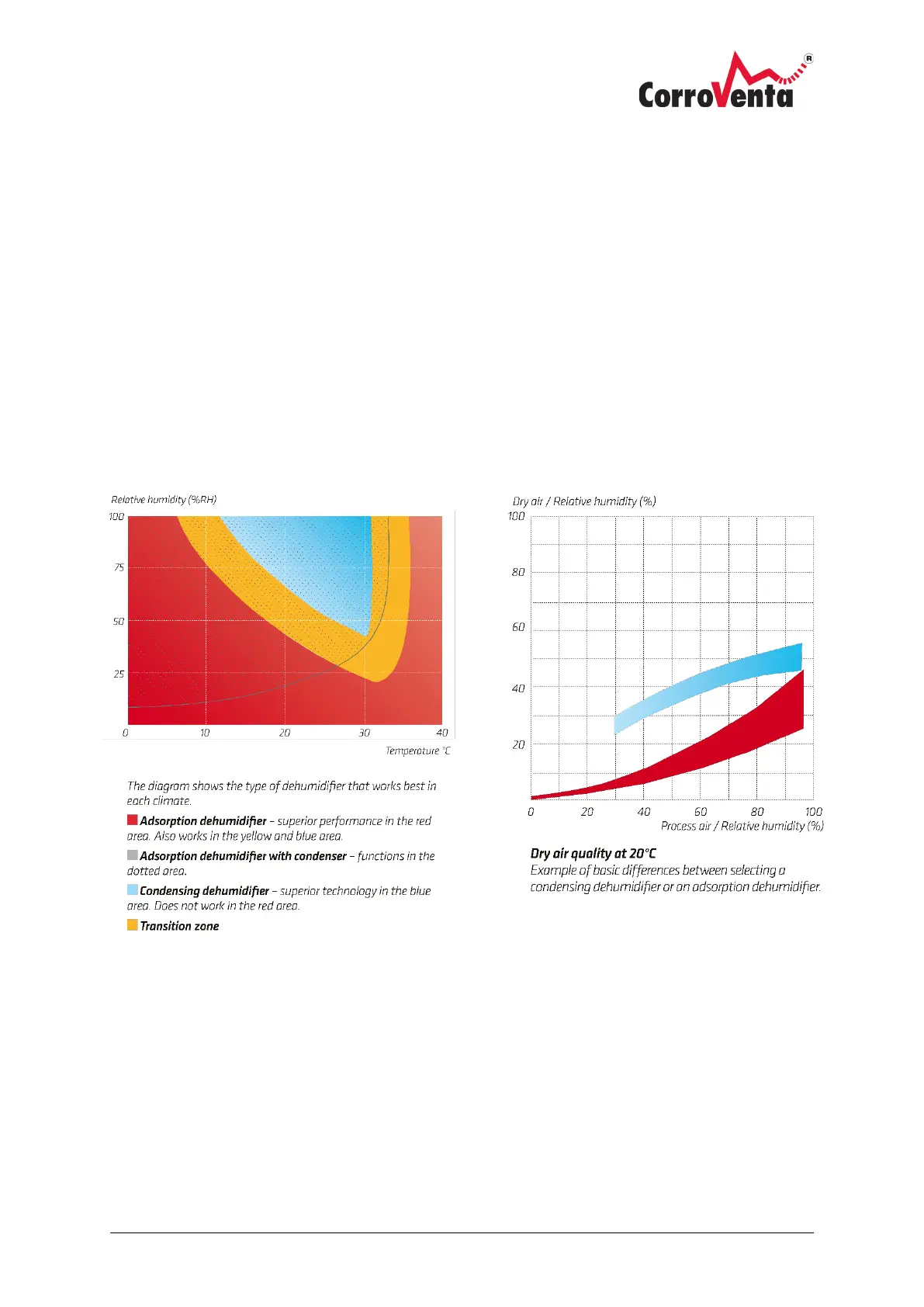 As the graph above shows, condensing dehumidifiers are used in hot and humid spaces if room
