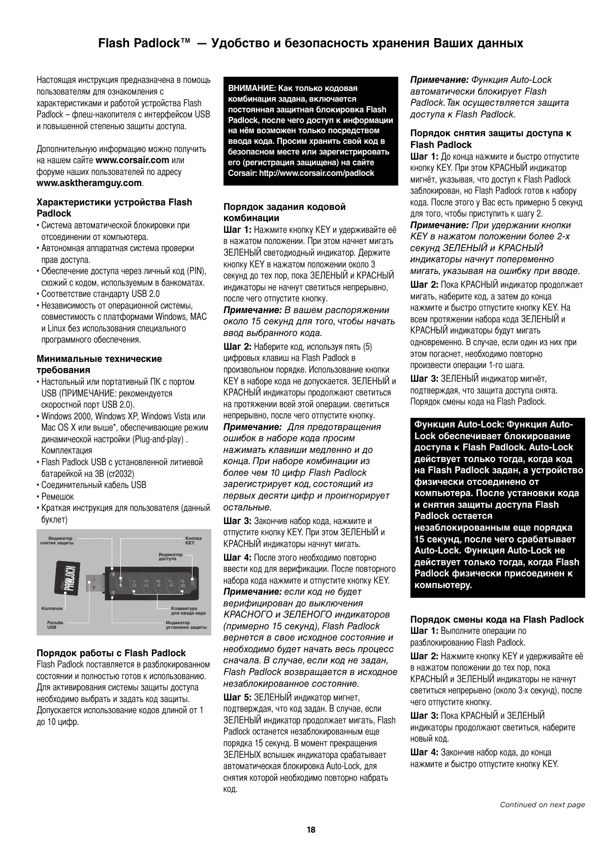 доступа к Flash Padlock. Auto-Lock