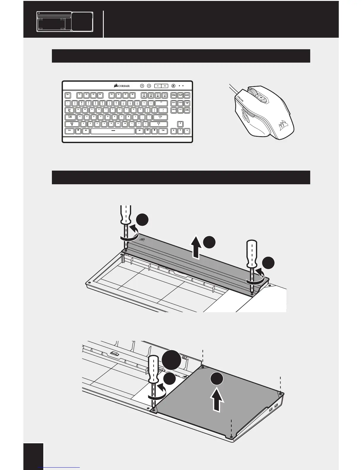 Corsair lapdog - Installing Corsair K65 Series Keyboard and Wired USB Mouse; Removing Mouse Pad and Cable Compartment Cover
