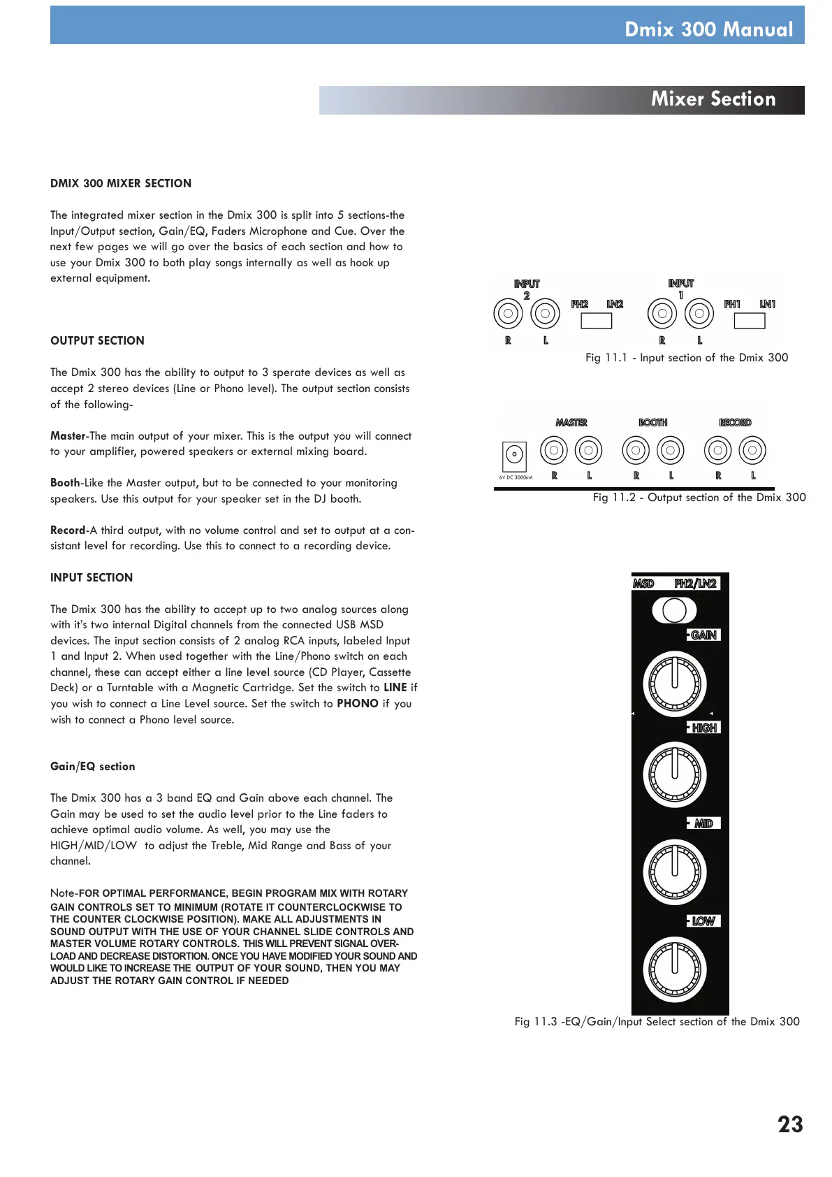 Fig 11.3 -EQ/Gain/Input Select section of the Dmix 300