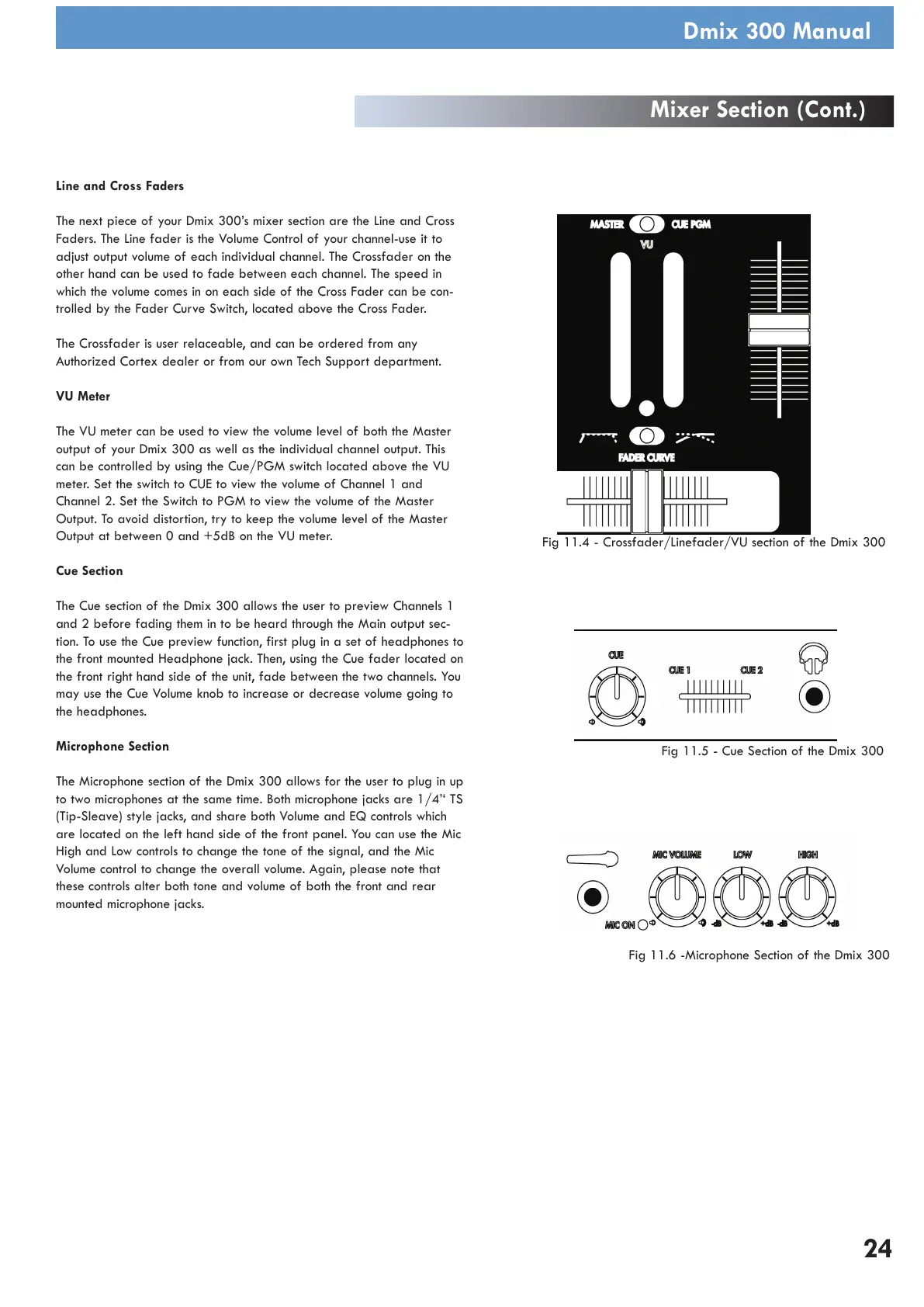Fig 11.4 - Crossfader/Linefader/VU section of the Dmix 300