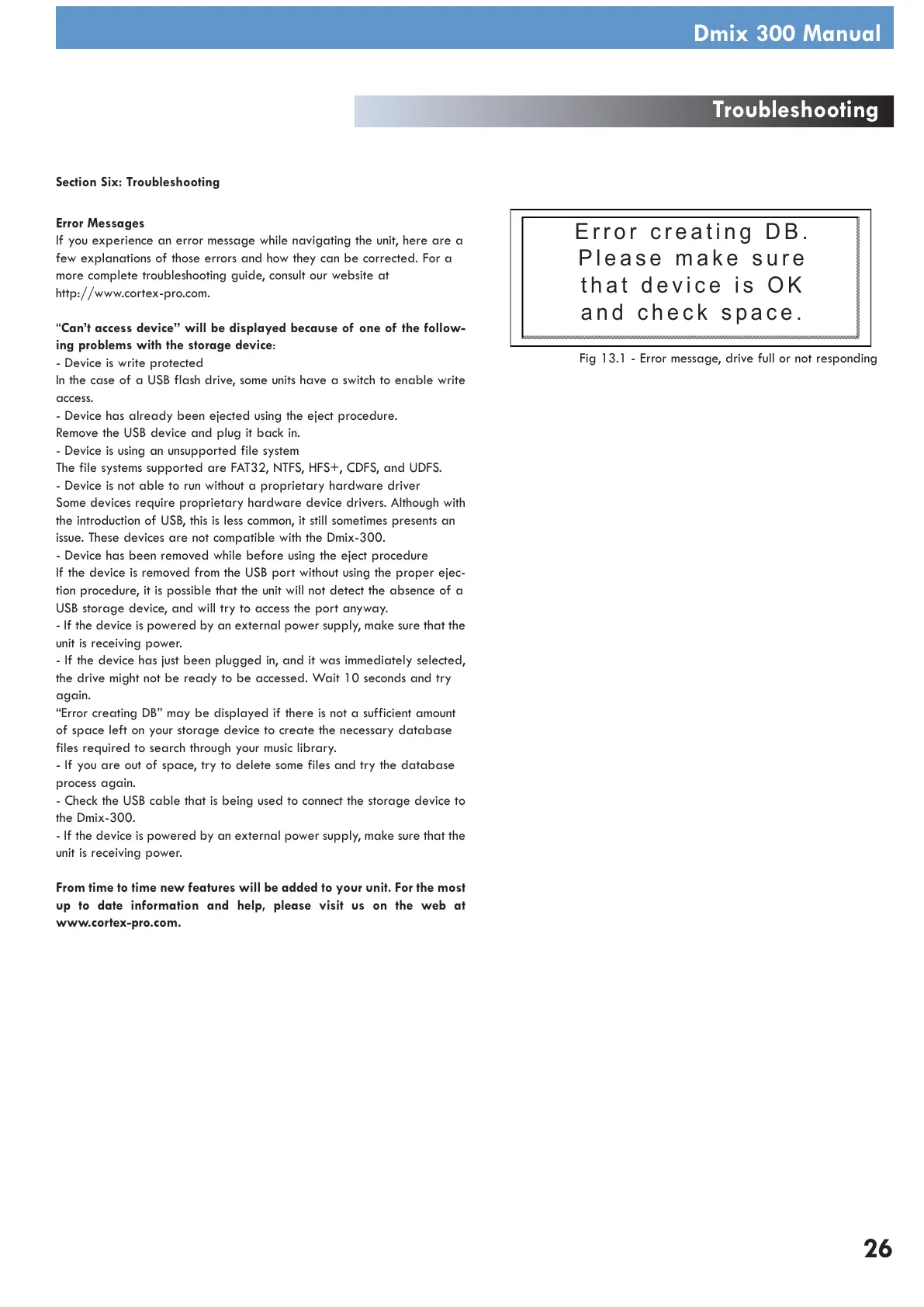 “Error creating DB” may be displayed if there is not a sufficient amount