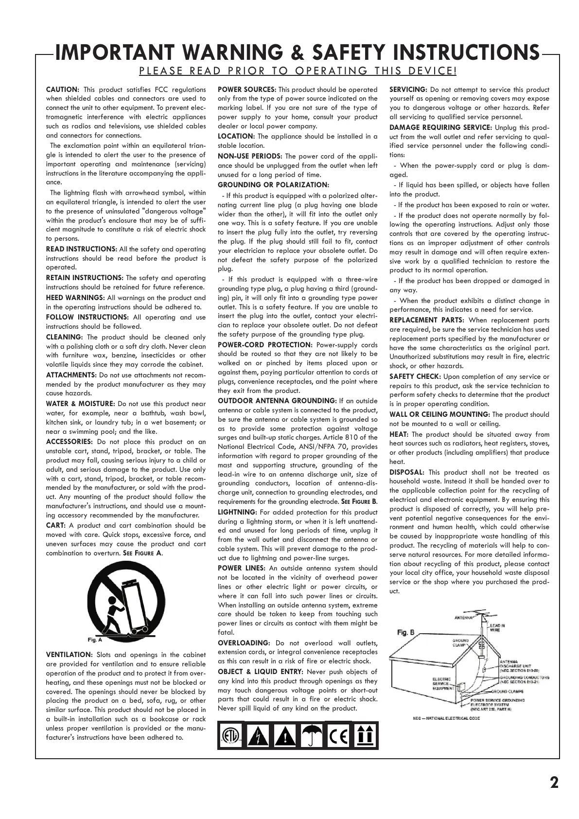 IMPORTANT WARNING & SAFETY INSTRUCTIONS