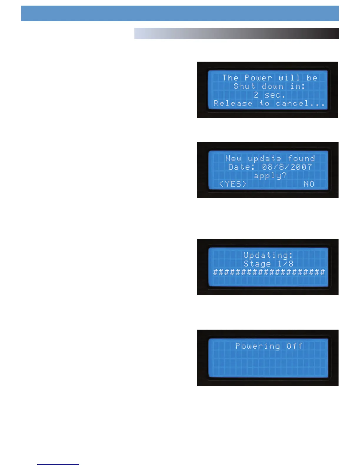 6. When the update is completed, the unit will shut itself down. You must