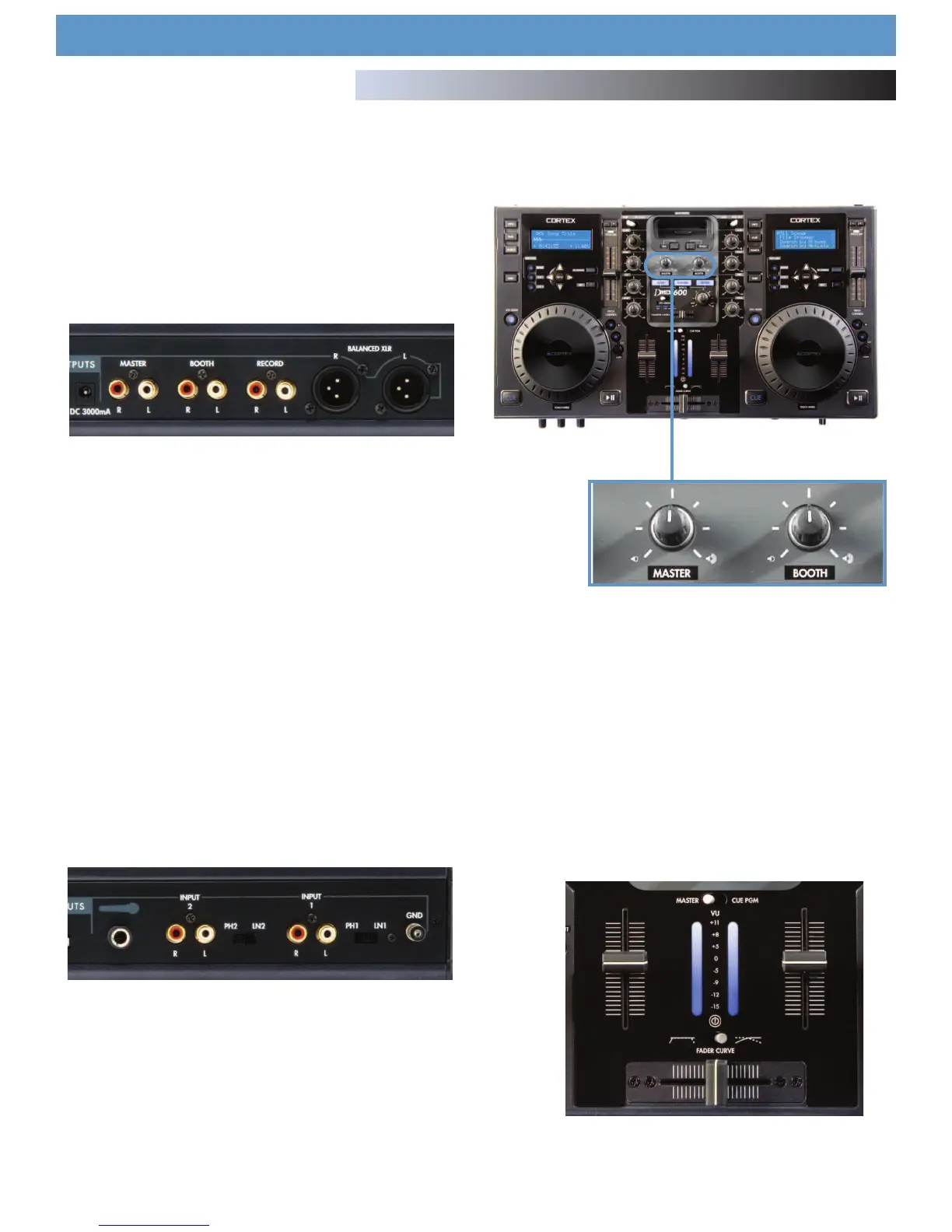 speakers and is controlled by the BOOTH rotary knob located just under