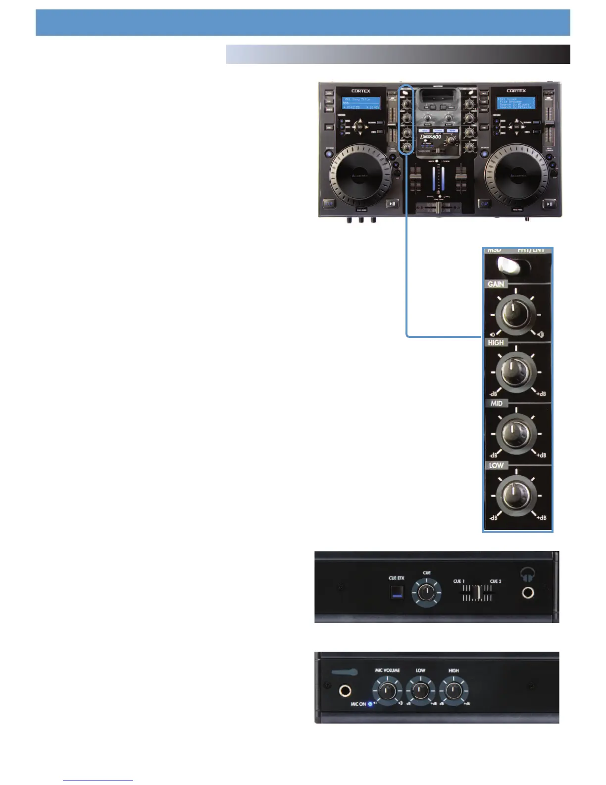 The DMIX-600 has a 3 band EQ and Gain above each channel. The