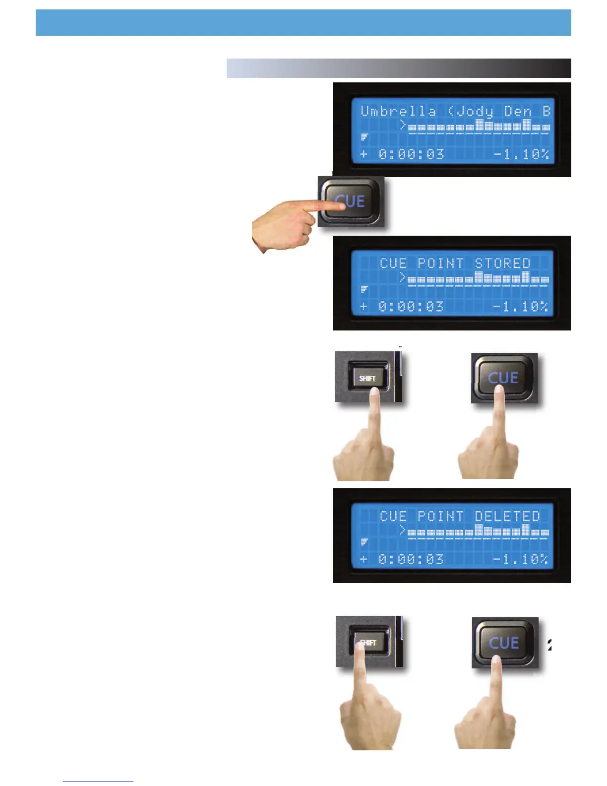 Para borrar completamente el Cue Point guardado, mantenga Shift y pre-