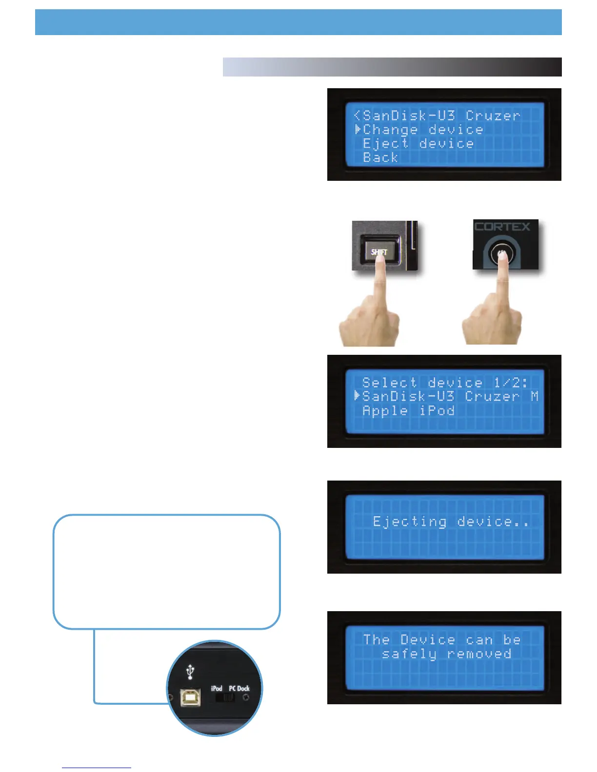 keypad o el Jog Wheel. Presione Enter para sacar el dispositivo.
