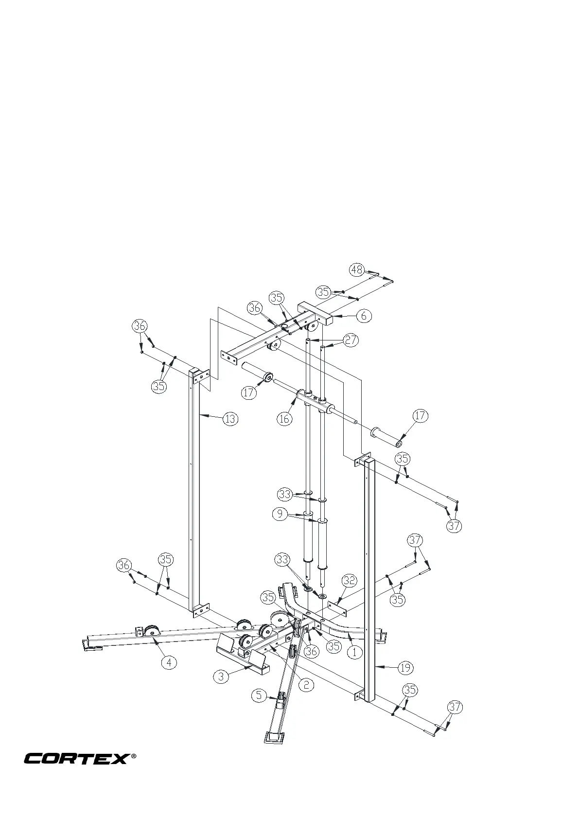 (2), using Screw M10X85 (37), Flat washer Ф10 (35) and Lock nut M10 (36). The same as