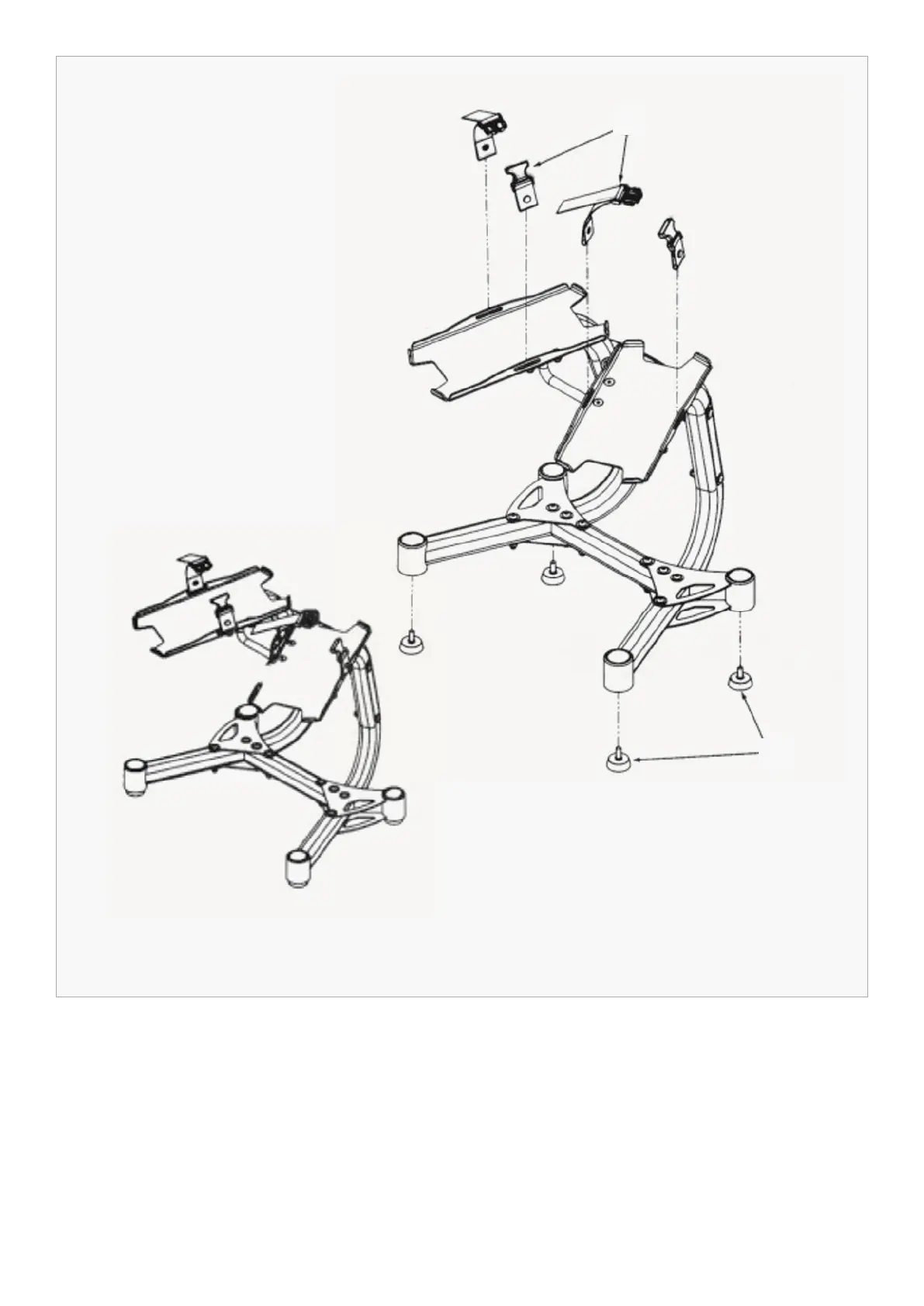 1. Attach either Foot Pegs (#8) or Caster Wheels (#15) to the Rear Left Stabiliser (#3), and both Stand