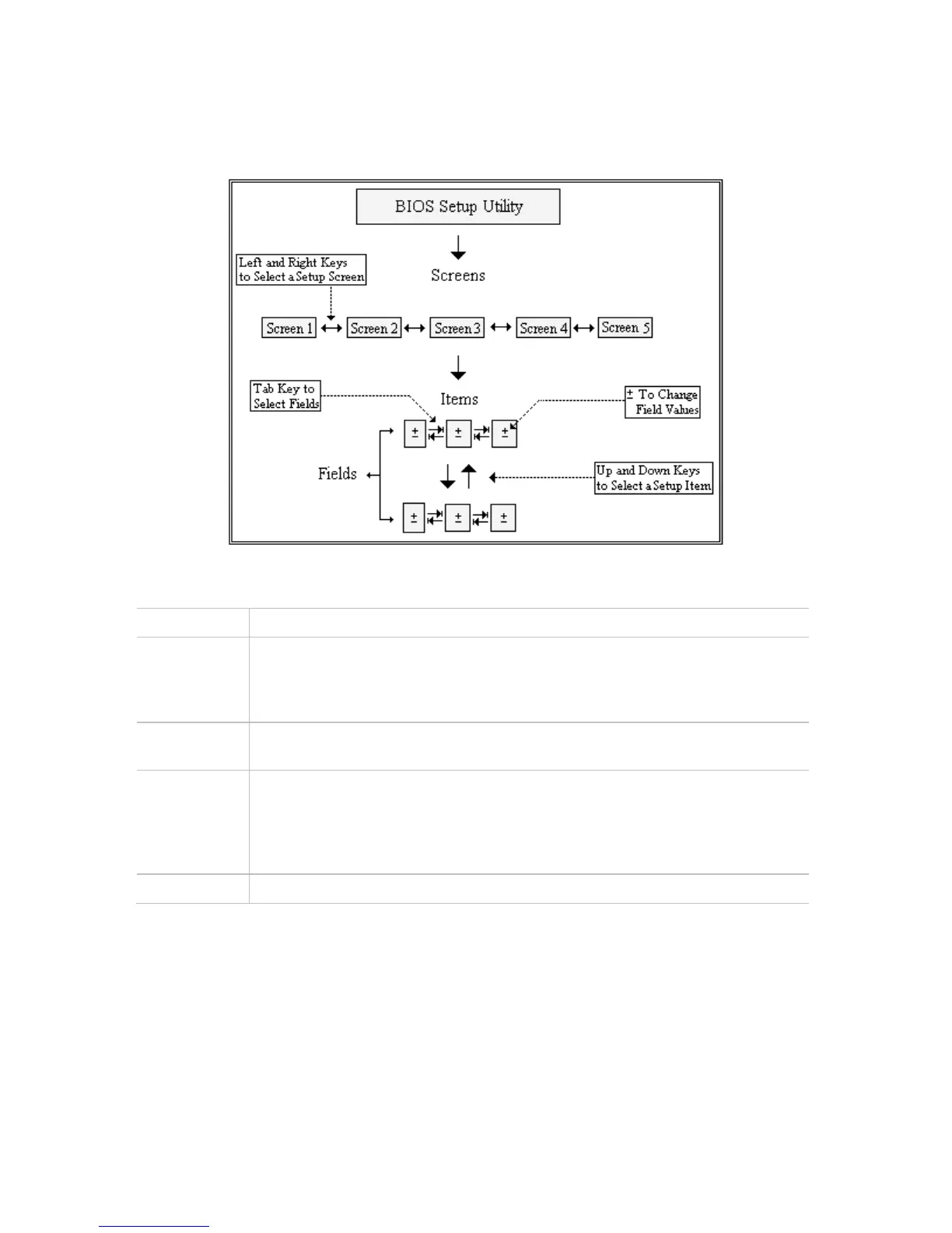 For example: Main screen, Advanced screen, Chipset screen, and so on.