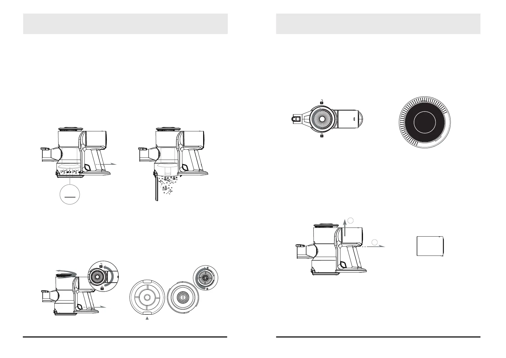 motor bin from the dust bin, remove the HEPA lter from the dust bin, grab the lter assembly, rotate