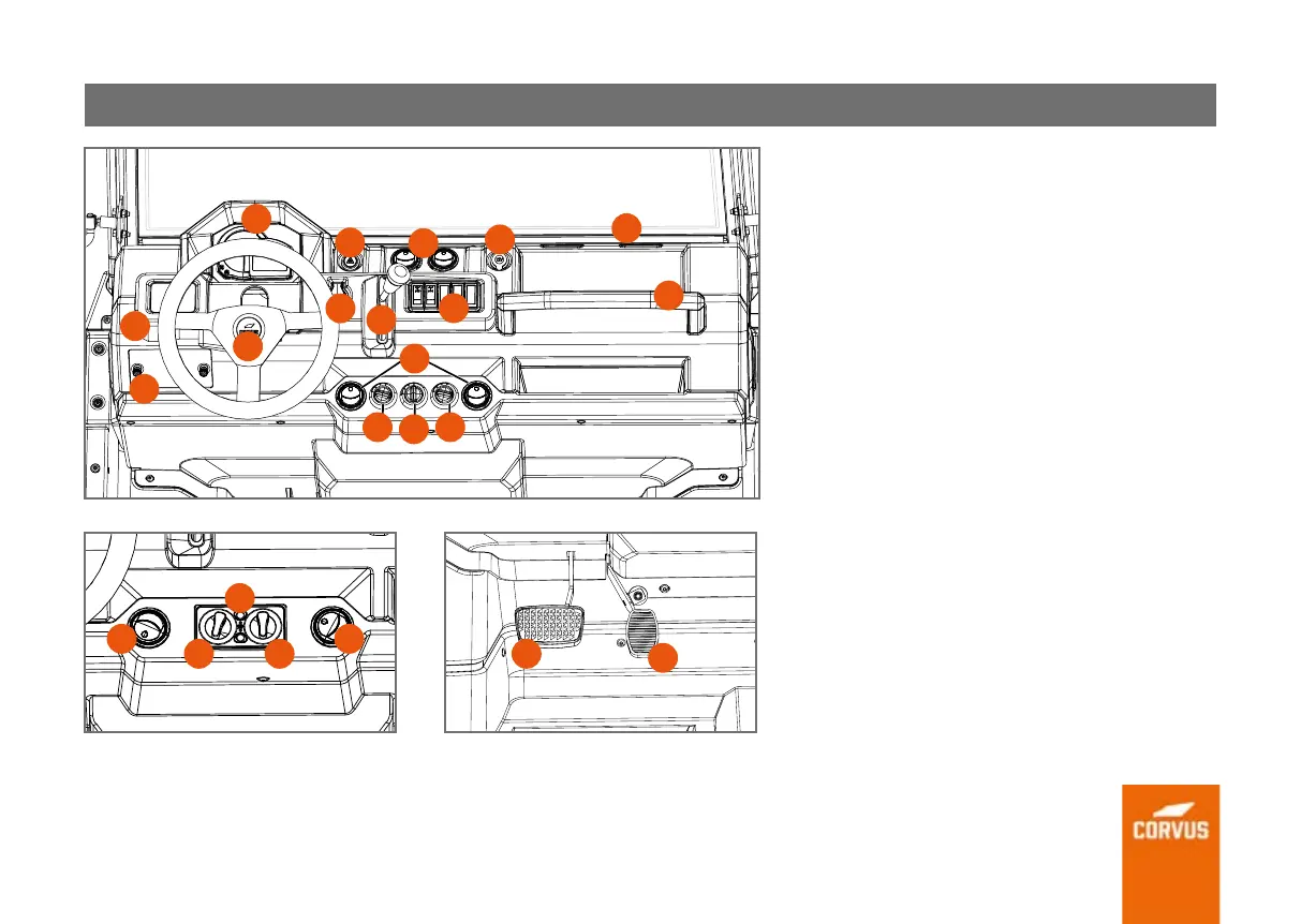 6. Lights control, steering indicators and horn.