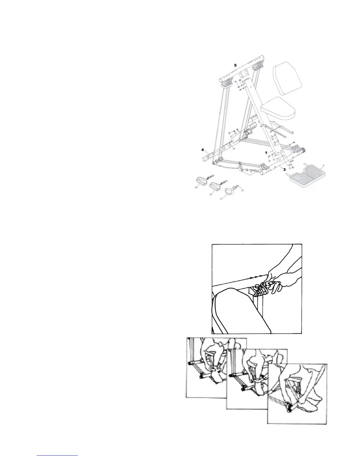 F. Insert the Foot Plate (6) to the Low Pulley Bar (3).