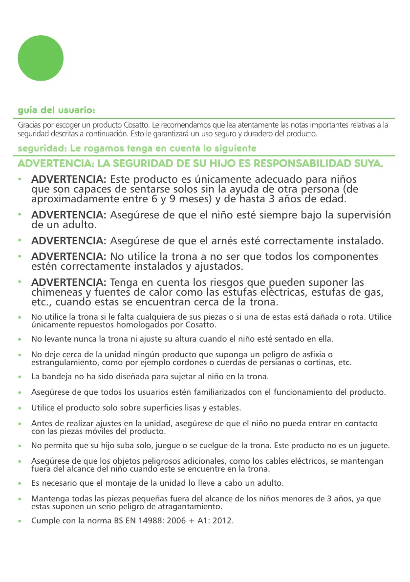 Gracias por escoger un producto Cosatto. Le recomendamos que lea atentamente las notas importantes relativas a la