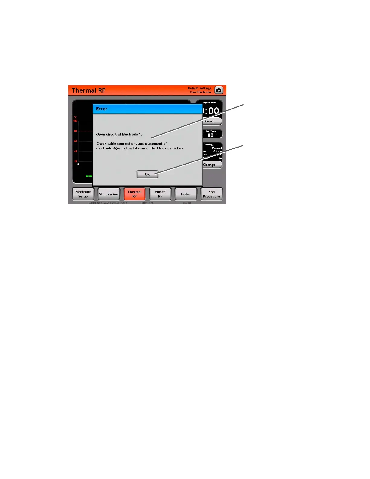 • Disconnect Electrode: Electrodes attached to generator do not match current Electrode Setup