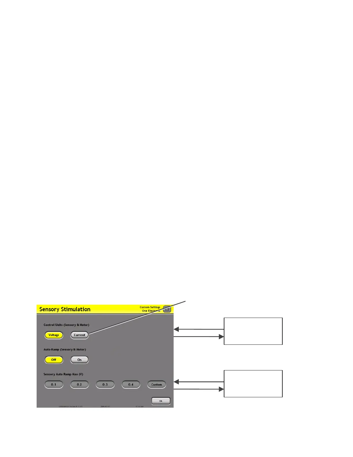 • Off: The Sensory and Motor Stimulation output level is controlled manually by the on-screen