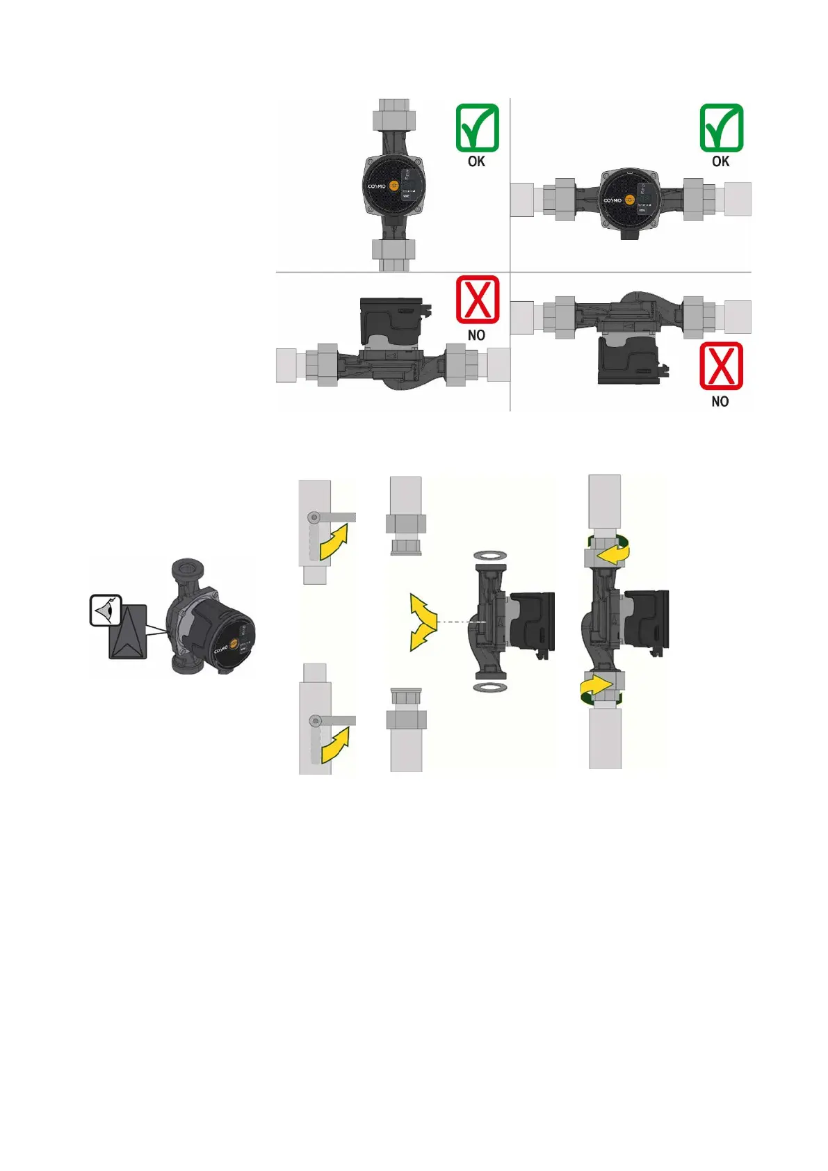 Šipky na krytu čerpadla ukazují směr průtoku čerpadla.