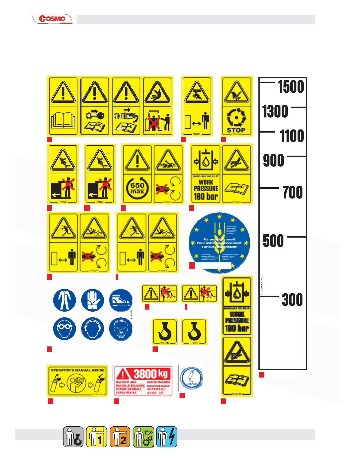The stickers are shown with reference numbers (1,2,3….12) that identify their position on the machine.