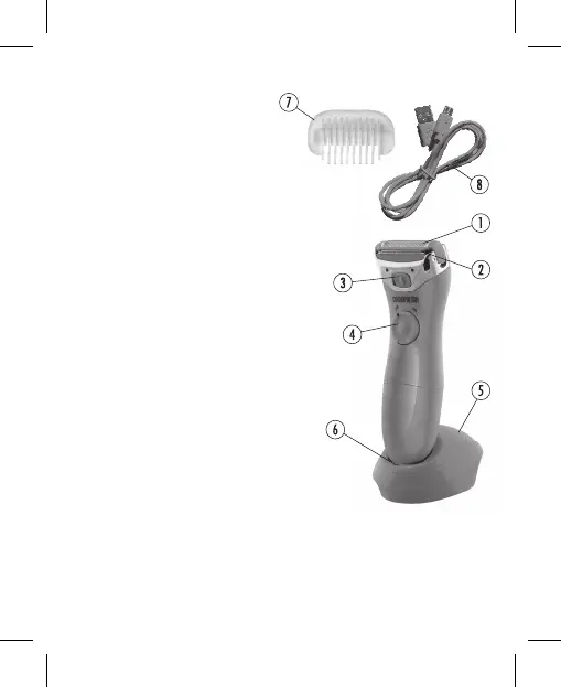 - Shaver, charging station, USB charging cable, protective