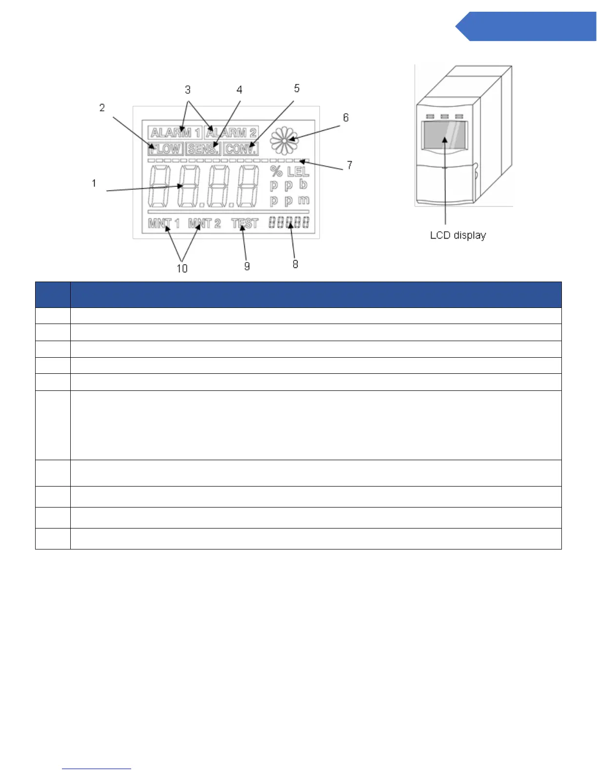 Shows the detected gas concentration (with units).