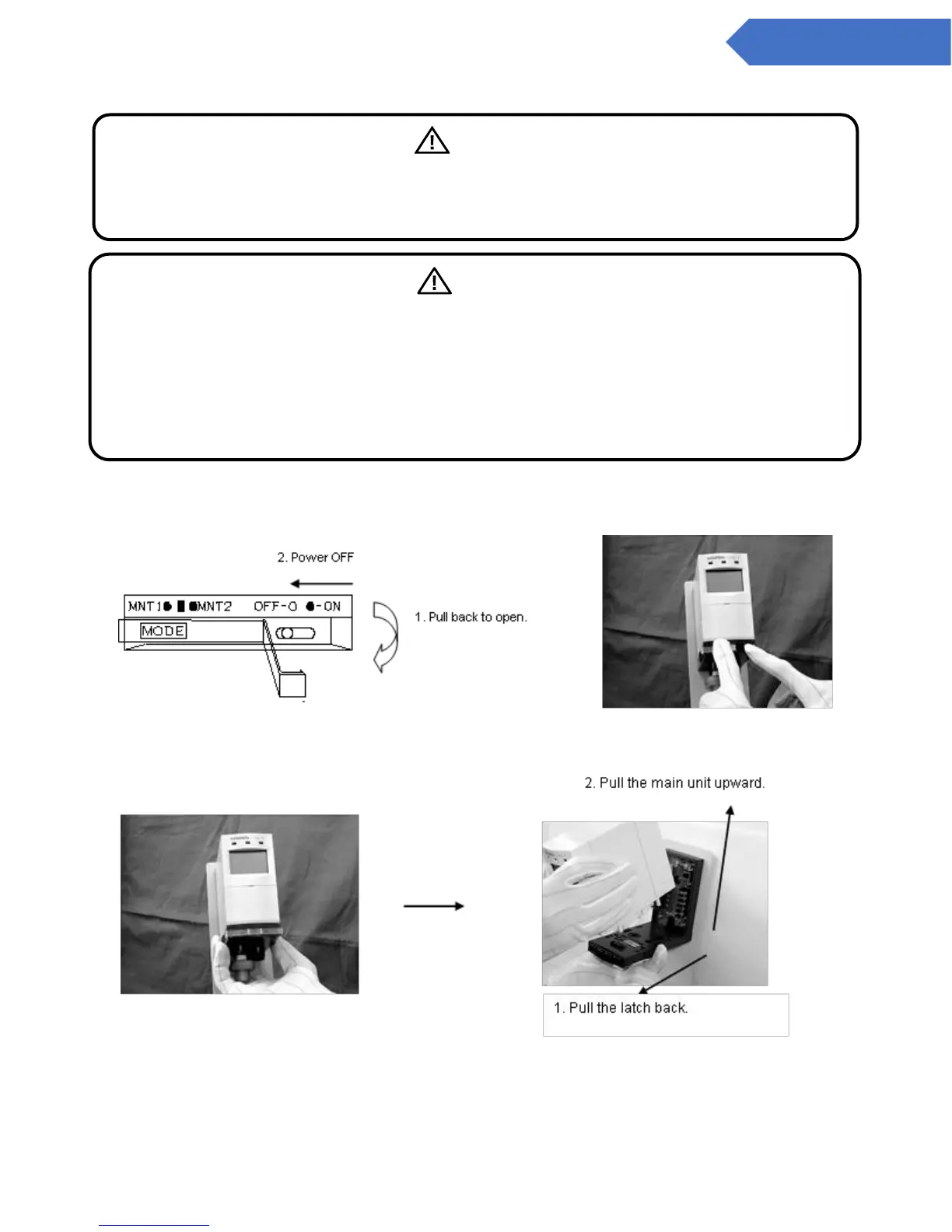 1. Turn off the power source to the main unit